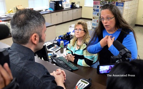 Davis (shown right) had been trying to get the court to overturn a lower-court order for her to pay $360,000 in damages and attorney's fees to a couple denied a marriage license.
