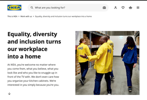 "Equality, diversity and inclusion turns our workplace into a home," is the first statement on its DEI page.