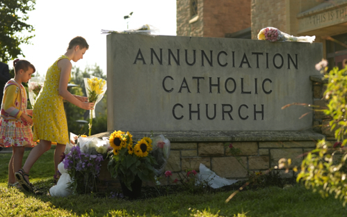 More recently, Catholic school children were gunned down during mass at Annunciation Catholic Church. In a YouTube video, the gunman shared drawings of the church before his attack. The AR-15 rifle he used was scrawled with the question, "Where is your God?"
