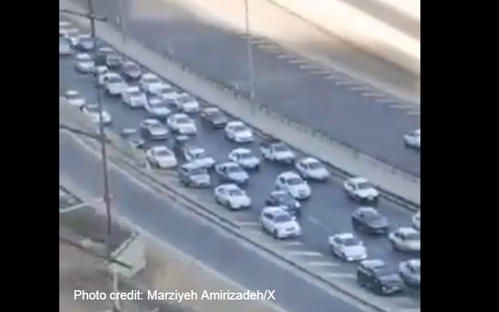 The videos show jam-packed Iranian freeways (pictured below) with people urgently trying to leave Tehran, especially after U.S. President Donald Trump encouraged them to get out.