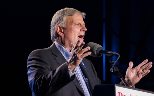 “Franklin Graham, son of Billy Graham, shows up at the White House yesterday to endorse the murder of civilians. How do you do that? Well, by quoting something called the Book of Esther,” Carlson said in the clip.