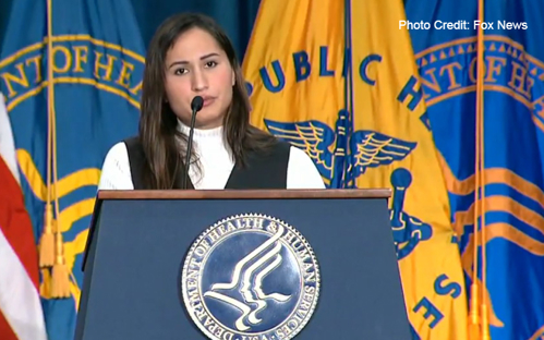 Cole spoke Thursday at the U.S. Department of Health and Human Services (pictured below) because the federal agency is vowing to defund hospitals that provide gender transition procedures.