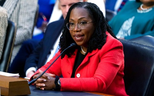 As for Ms. Jackson (right), whatever else she does, she’ll forever be famous for stating, “I’m not a biologist” when asked the simple question “What is a woman?”