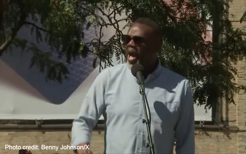 In a fiery but vaguely-stated call to action, the Mayor (pictured below) urged a crowd of rowdy supporters to "defend this land" and "stand firm" against President Trump. It was unclear what Brandon was asking Chicagoans to do.